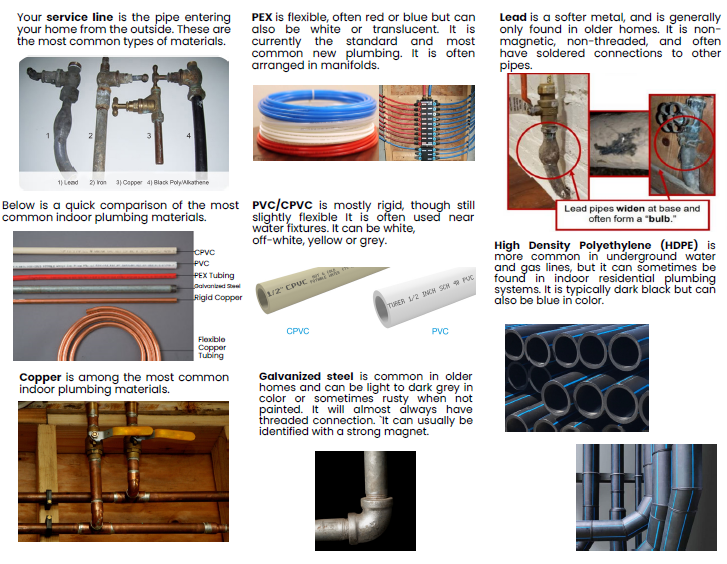 Drinking water for your home is delivered from the water main to your home by a service line. Service lines can possibly contain lead. Identifying homes that have a lead service line or other lead components is crucial because corrosion of these materials over time can cause lead to accumulate in your drinking water.